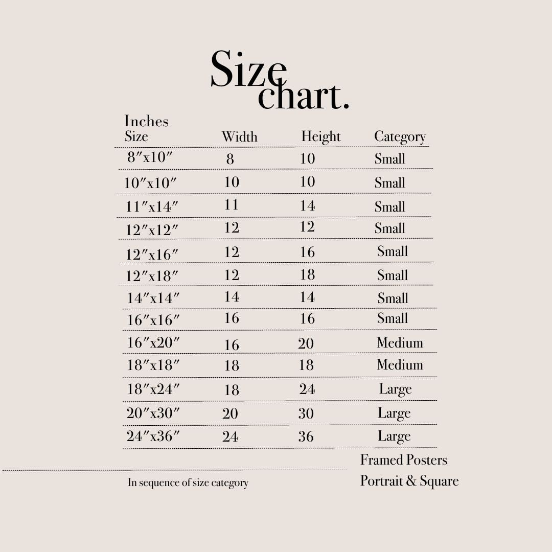 When you place an order for our wall art it is printed specifically for you. Please refer to the selected dimension(s) in the size chart for visualization.