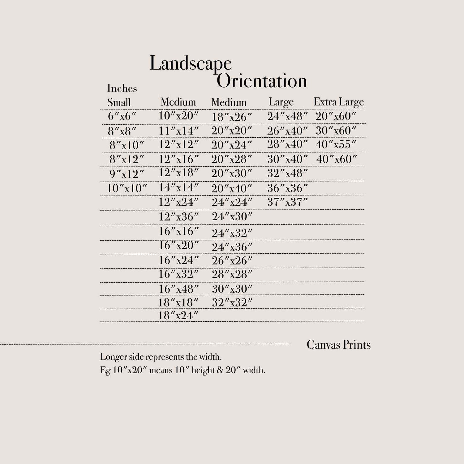 When you place an order for our wall art it is printed specifically for you. Please refer to the selected dimension(s) in the size chart for visualization.