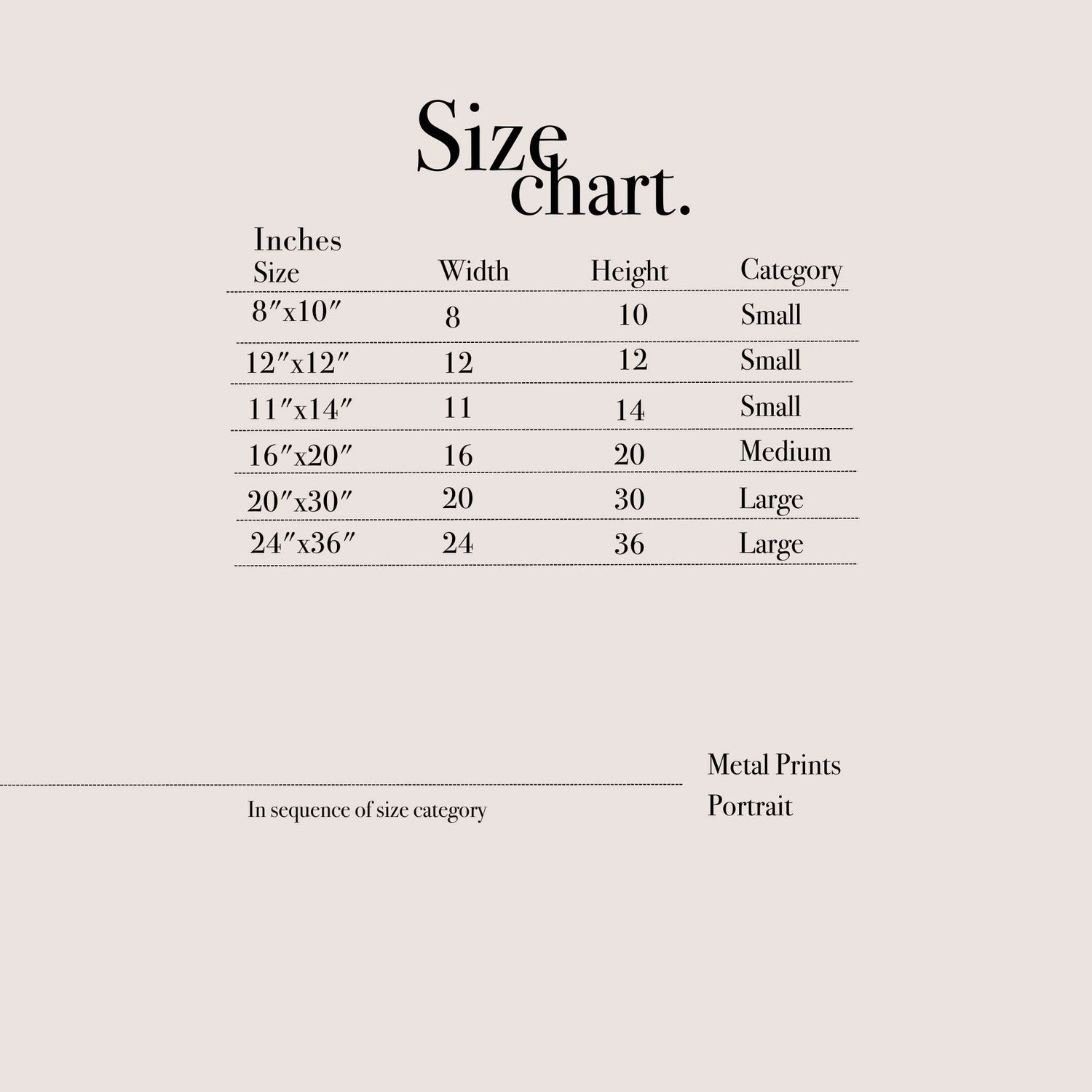 When you place an order for our wall art it is printed specifically for you. Please refer to the selected dimension(s) in the size chart for visualization.